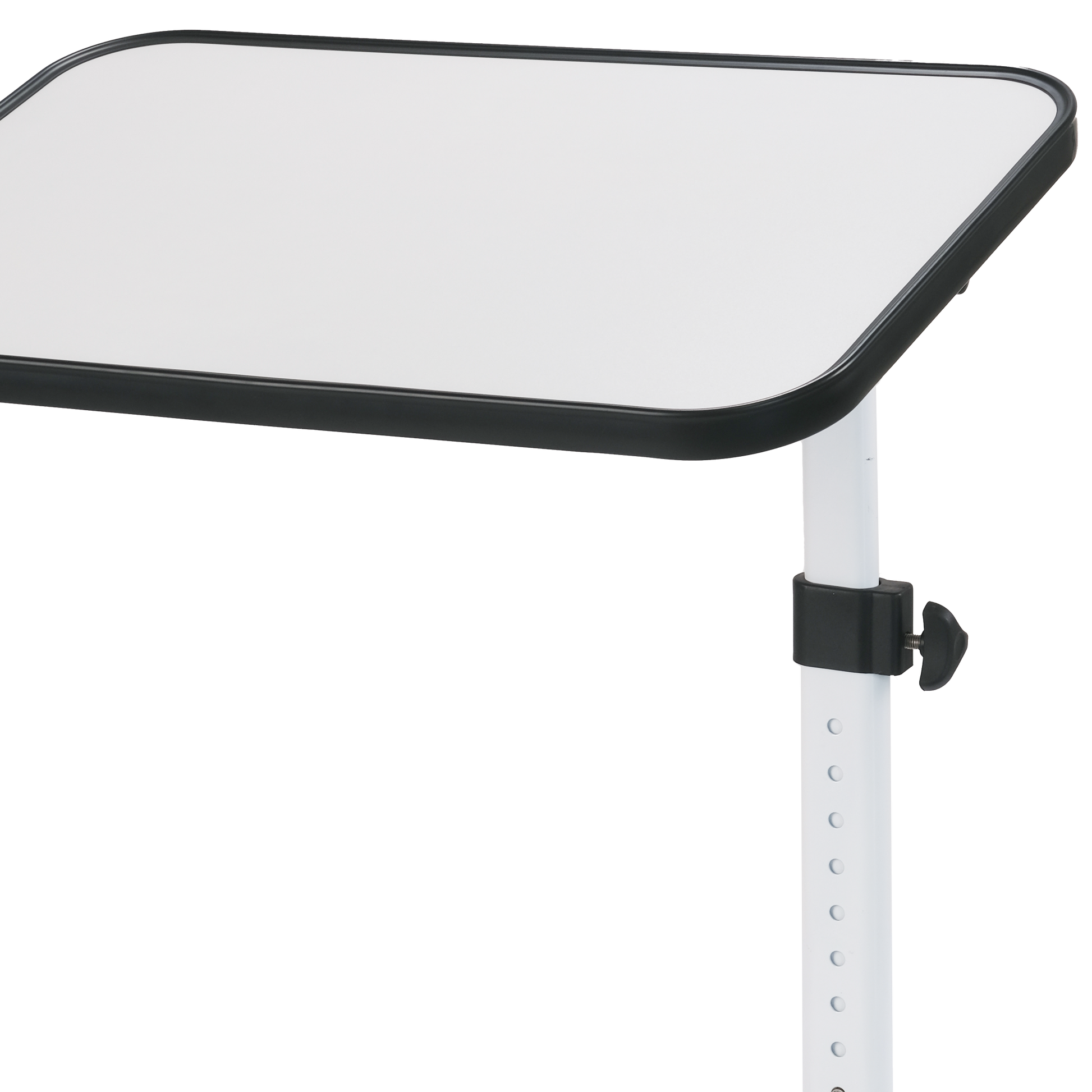 The Caremo tilting underbed table is height adjustable and fitted with castors for easy maneuverability. The table top is easy to clean and the frame is powder coated.